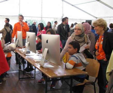 Go-Lab and The Discover the COSMOS projects had their own presentation place, where six large screen PCs and 4 iPads were set-up and had some of projects’ labs running for demonstration to the public. The labs included the LHC game and CERNland for smaller kids, as well as HYPATIA, MINERVA and Collider for the ATLAS event display and analysis.