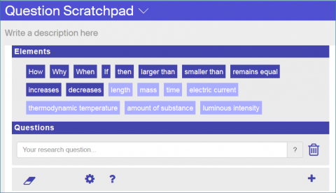 The Inquiry Learning approach itself is an interactive, explorative and discovering way of learning that is leading the students to ask questions, find new solutions and understand scientific problems. It’s a learning cycle of different phases (orientation, conceptualization, investigation, conclusion, discussion) that needs effective guidance by the teachers, scientific experimentation settings and learning resources, as well as instructions which are offered by Go-Lab. The figure below displays a scaffold (app) that helps students to create research questions in the conceptualization phase.