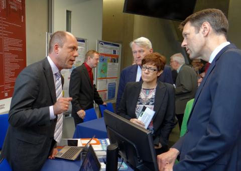 The Go-Lab project was represented with a booth at the Route 2020 event, 3 July 2013, Saarbrücken, Germany. IMC had been invited to present Go-Lab as an example of a successful research project in the current research program. Around 20 research projects were on the exhibition area that was well visited by the delegates. The event introduced the new EU research program Horizon 2020 to 200 delegates from companies and research institutes of the Saarland state, Germany. Among the speakers wereMs A. Kramp-Karrenbauer, prime minister of the state of Saarland, Dr. G. Schütte , state secretary federal ministry of research, and Herbert von Bose, Director, Industrial Technologies, DG Research & Innovation, European Commission. They later came to the Go-Lab booth where they were explained the project goal and approach. Notably the example of European school students using robotic telescopes raised their interest.
